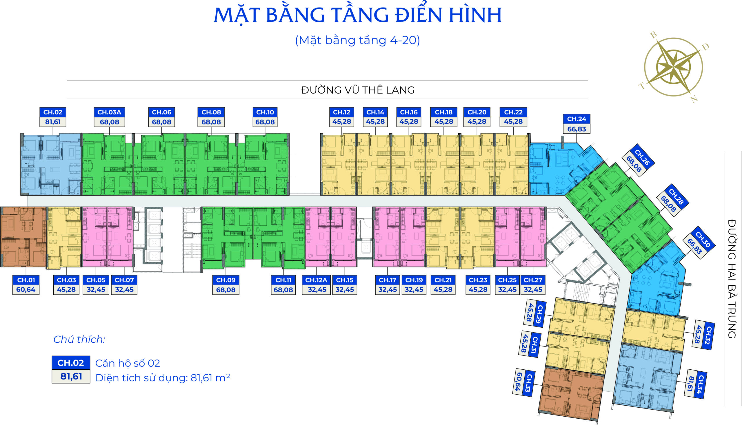 Quy mô: 3 tòa tháp 20 tầng gồm 578 căn hộ.