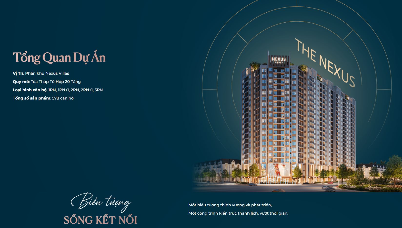 Chung cư Nexus Tower – Biểu tượng sống kết nối bao gồm 3 tòa tháp tổ hợp 20 tầng, đa tiện ích.