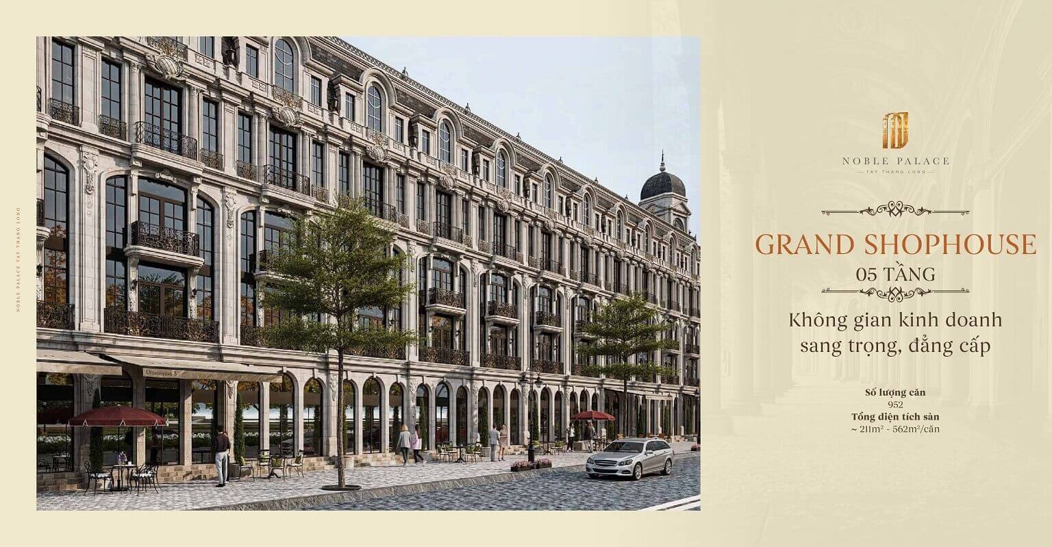 Noble Palace Tây Thăng Long Đan Phượng có quy mô 77 ha, được quy hoạch theo phong cách kiến trúc cổ điển Châu Âu. Dự án gồm 2.448 căn Grand Shophouse và Elegant Shophouse, được thiết kế tối ưu công năng, sử dụng thiết bị nhập khẩu từ các thương hiệu cao cấp như Gessi, Duravit. Đây là “thành phố không ngủ 365 ngày”, nơi hội tụ mua sắm, giải trí và văn hóa chuẩn quốc tế.