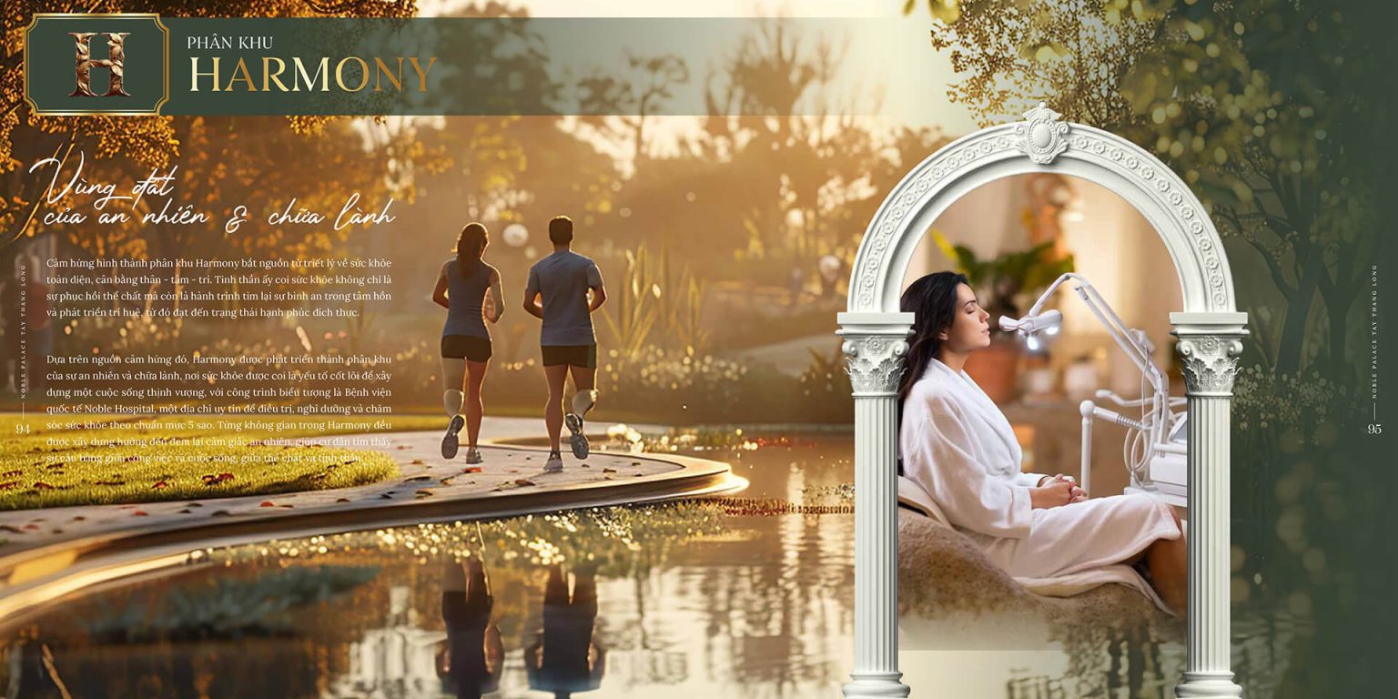 - Harmony – Vùng đất an nhiên: Phát triển theo triết lý cân bằng thân – tâm – trí, với trung tâm y tế quốc tế và không gian sống dưỡng sinh chuẩn resort.