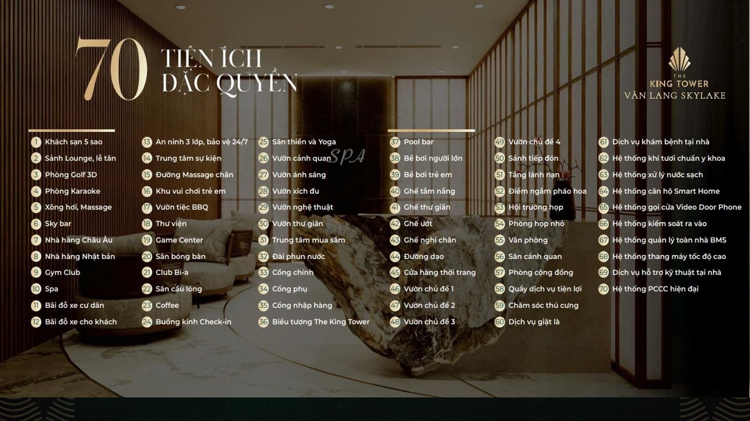 - Văn Lang SkyLake là khu đô thị tiên phong mang đến trải nghiệm sống quốc tế tới Phú Thọ. Với những tiện ích đẳng cấp, đi kèm công nghệ smart home hiện đại đón đầu xu hướng, Văn Lang SkyLake là dấu ấn nổi bật với tổ hợp tháp đôi căn hộ cùng khu thương mại cao cấp, song hành cảnh quan xanh độc đáo được thiết kế bởi những tên tuổi hàng đầu thế giới.